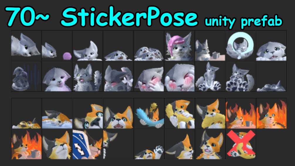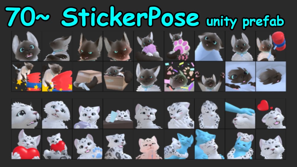 - 88 Unity scene pose ready for for 70~ Static stickers and 9~ Animated stickers